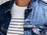 Wingtip boots: Thursday Boots, $220 // Denim jacket: Levi's, $69 // Striped sweater: Goodthreads, $30 // Tapered stretch chinos: Dockers, $30