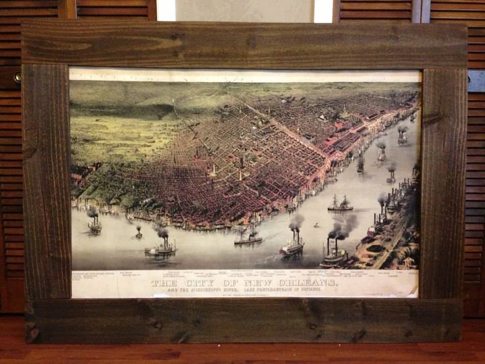 When your frame is finished to your liking, we need to attach the map. Unfortunately, this is probably the hardest damn part because you have to keep adjusting it until you have it straight. You can use a staple gun or tape to attach the print to the back of the frame.