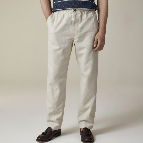Currently has all sizes available and is available in a tan and olive green color. Very much like the pair that I recently picked up from Gap, which is just like a loose linen cotton blend pant with a drawstring, and I’ve been wearing mine non-stop. I love it for casual outfits. It’s so easy to dress up and these aren’t like joggers. You can absolutely wear a camp collar polo or button up with it and look super cool in the summer. They’re very breezy.